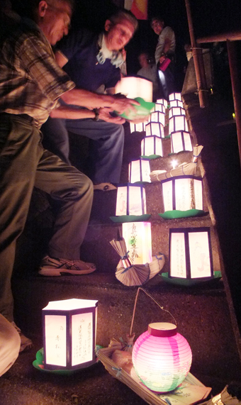 同寺の近くに住む赤松節子さん(86)は「昔を思い出して懐かしく感じました。いいお盆になりました」と灯籠を見つめていた。