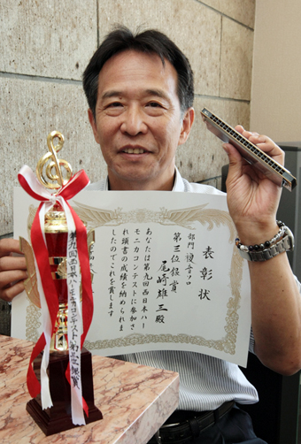 西日本ハーモニカコンテストに初出場で3位に入賞した尾崎雄三さん