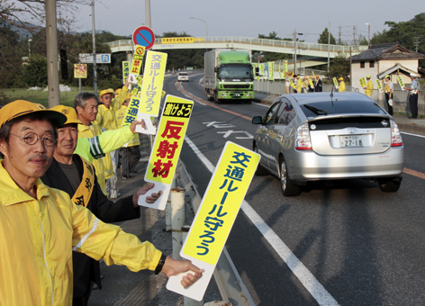 交通量の多い国道2号で行われた交通安全キャンペーン