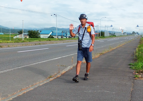 約3000キロを歩く日本縦断の旅にチャレンジしている司波伸作さん。ブログは「ポレポレ日本!」で検索できる