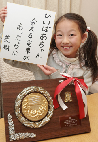 今年の同部の課題は「電車」。県下の小学生から高校生まで2416句の応募があった。網本さんは写真でしか知らない母方の曾祖母への気持ちをそのまま詠み込んだ。