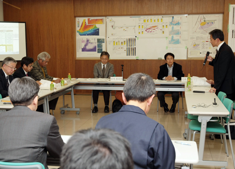 「発生原因の手がかりはつかめたが、まだ確証は得られていない」と青木伸一委員長=大阪大学大学院教授=。暫定対策については「大きく地形を変えるとメカニズムの解明自体が出来なくなってしまう場合もある。環境面への配慮も必要」との見解を語った。