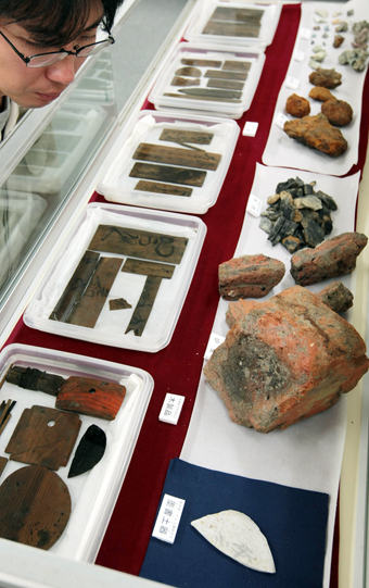 赤穂城下町跡で出土した木簡、有年原・クルミ遺跡で発掘された墨書土器などを展示する速報展