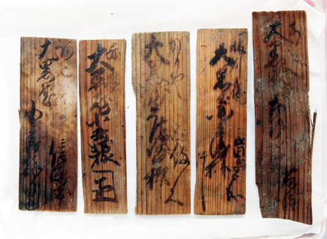 今回の発掘調査では、江戸後期(200〜300年前)の遺構面から40点近い木簡も出土した。幅3〜5センチ、長さは最も長いもので19センチほど。「大黒屋」「大坂」「もぐさ」といった文字が読み取れ、荷札や商売に関するものだったと思われる。平成10年度に始まった赤穂城下町跡の発掘調査で町家の裏地を面的に発掘したのは、これが初めて。荒木学芸員は「数多くの遺物がいまだ埋蔵されていることが明らかになった。今後の調査でも良好な資料が出土するだろう」と期待している。