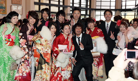 式典後、笑顔で記念写真に収まる新成人のみなさん