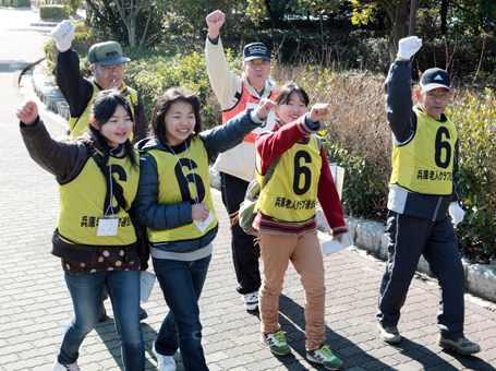 小学生も参加した老人クラブ連合会の健康ウオークラリー