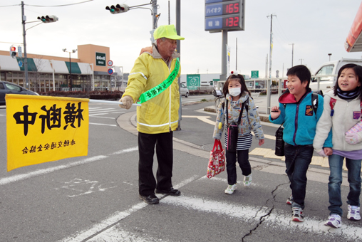 子ども会の保護者が当番制で立ち番するようになった昨春以降も「子どもたちの明るい顔を見ると、こちらも元気が涌いてくる」と週2日は交差点に立つ。安川さんは「先にあいさつしてくれる子が増えてきたのが何よりもうれしい」と子どもたちの変化を一番に喜んでいる。