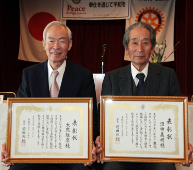 職業奉仕賞を贈られた大鹿雄康さん(左)と沼田義明さん