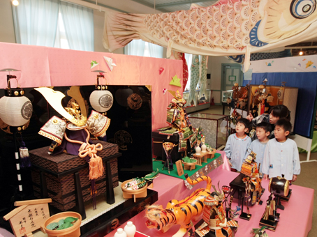 「子どもの健やかな成長を願った伝統的風習のよさを感じてもらえれば」と前田館長。5月26日(日)まで午前9時〜午後5時。水曜休館。大人100円、小・中学生50円。期間中は抹茶と茶菓子の接待あり(なくなり次第終了)。TEL42・1361。