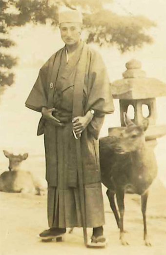 明治郎さんは生まれ育った塩屋村で役場職員として勤務するかたわら、加里屋の随応寺で江西白牛禅師が主宰した俳句会「紅蓼会(こうりょうかい)」に入会。面倒見のよい社交的な性格で、周囲の人たちから「メエさん」の愛称で親しまれたという。