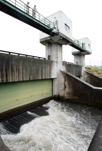 昭和57年に整備されてから初めて開かれた加里屋川放水路の水門