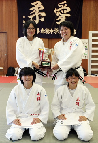 市中学総体柔道で男子団体を制した赤穂東