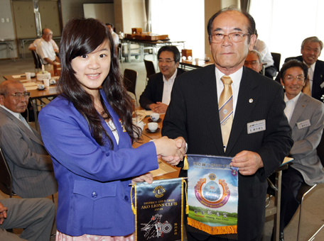 日本を訪問したのは3度目で、赤穂は今回が初めて。赤穂城と歴史博物館が特に印象に残ったという。23日には赤穂LCの例会で、日本語でスピーチ。「日本の文化と言葉を学んで、もっと交流を深めたい」と抱負を語り、「ぜひ台湾にもお越しください。心からお待ちしております」と笑顔であいさつした。