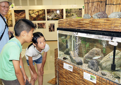 7基ある水槽には、体の色斑がきれいなオイカワ、流れの緩やかな淡水に生息するテナガエビなど14種類を生きたまま展示。顕微鏡コーナーでは肉眼ではわからないプランクトンの姿を拡大して観察できる。