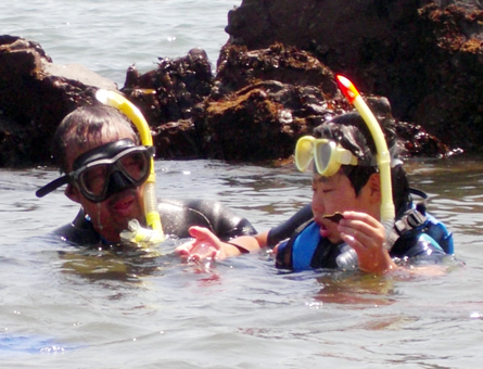 たつの市龍野町日山の高橋直之君(11)は昆虫や魚など生き物が大好き。同海岸でスノーケル教室を開く「赤穂海っ子倶楽部」(三島正嗣代表)が障害者も受け入れていることを知った母由紀子さん(38)の勧めで昨夏に初体験し、「もう一度、やってみたい」と再び申し込んだ。