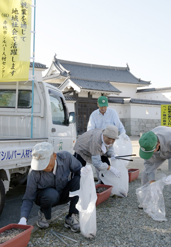 全国シルバー人材センター協会は毎年10月第3土曜日を「シルバーの日」とし、各地でボランティア活動を行っている。赤穂では今回が初めて。