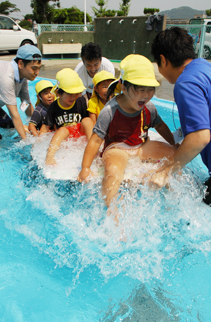塩屋、城西幼稚園でも同日、夏祭りを開催。買い物ごっこや魚のつかみ取りなどで園児らを喜ばせた。