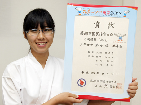 国体4位入賞の賞状を手に笑顔の北川真美さん