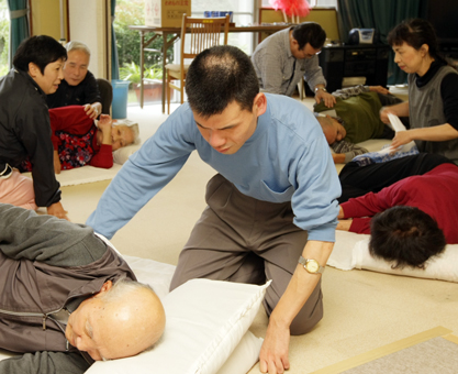 赤穂市身体障害者協会盲人部と市視覚障害者協会が毎秋に実施している奉仕行事で今年20回目。マッサージ師と同じ数の利用者6人が施術を希望し、広間で座布団の上で横になった。昨年に続いてマッサージを受けた桃井悦子さん(78)は「最高。上げ下ろしが痛かった腕の調子もよくなりそう」と気持ちよさそうだった。