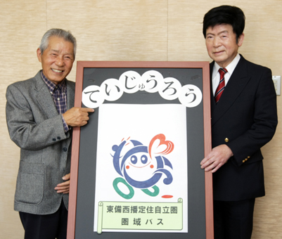 圏域バスの愛称「ていじゅうろう」とロゴマークを考案した山本俊郎さん(左)と駒井瞭さん