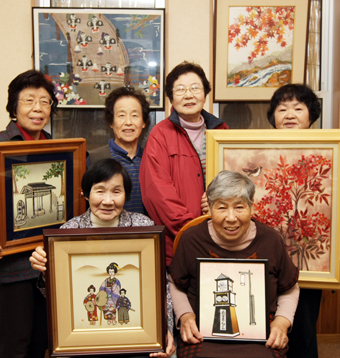 趣味の作品展を開いている「和紙絵の会」のみなさん