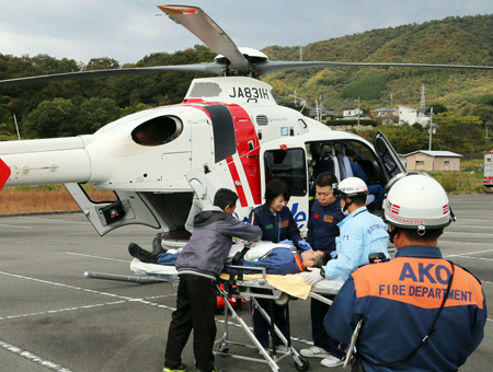 田渕徹・救急課長(54)は「救急隊では不可能な処置や、重症患者さんの早期の処置が可能になる」と運航を歓迎。11月27日(水)午前に中広の千種川河川敷でも訓練を実施する。