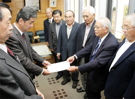 産廃処分場「計画反対」の意見書を県へ手渡す木村音彦会長ら赤穂市自治会連合会の役員団