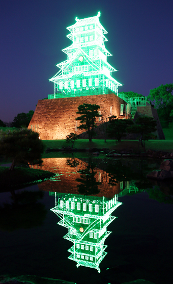 ライトグリーンの5層天守が輝きを放った「幻の天守閣」の試験点灯