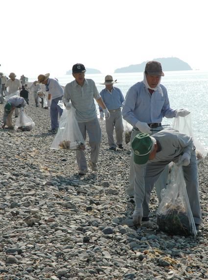 丸山海岸でごみを拾うシルバー人材センターのみなさん