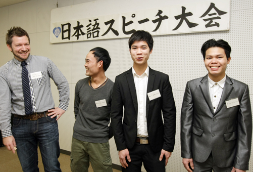 「受講者の励みになれば」と初めて企画。中広の赤松工業でエンジニアとして研修中のベトナム人、グェン・バン・リュエンさん(29)ら来日2〜10年目の4人が出場した。