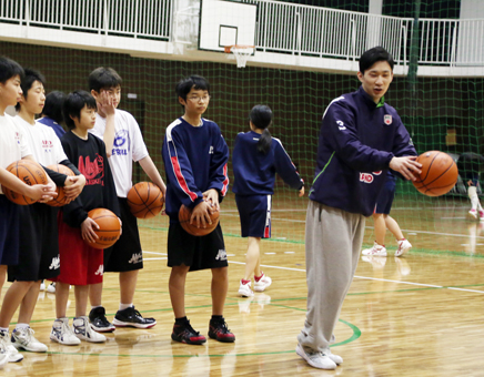松崎選手は「短い練習時間でどれだけ努力できるかが大事。バスケットの楽しさを忘れず頑張って」とエールを送っていた。