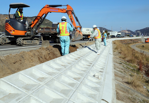 同土木事務所によると、赤穂市内における同様の補強工事は坂越、木津、高野で昨年度に実施済みで、来年度には冨原〜東有年の約9キロ区間でも施工予定。「交通規制でご迷惑をおかけしますが、少しでも早期に対策工事を完了させますのでご理解ください」としている。