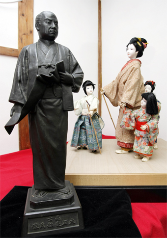 内蔵助銅像とりく日本人形