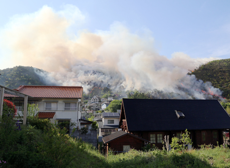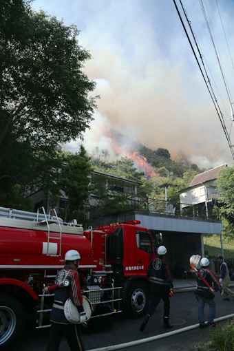 木津で山火事、住民に避難呼び掛け