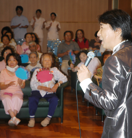 歌の合間には自分のふるさとの話などトークで会場を和ませ、記念写真にも気さくに対応。アンコールの求めにも応え、ファンサービスに努めた。