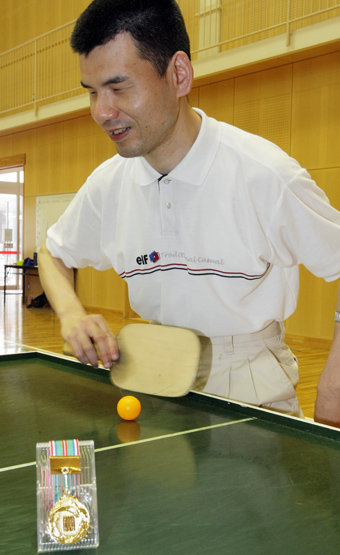 サウンドテーブルテニスの県大会で優勝した三谷勝彦さん