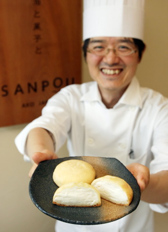 直径6センチほどの円盤型で、うっすらと焼き色のついた生地はもちもちした弾力があり、中には甘さを抑えた真白な特製クリーム。豆腐本来の素朴な風味が好評だ。