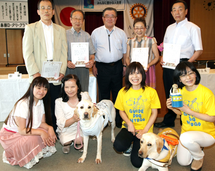 感謝状は募金活動20周年を機に同協会と連名で贈呈。盲導犬ユーザーの清水幸代さん(65)=上仮屋南=もパートナーのフォンク号とともに贈呈式に出席し、「盲導犬がいるから、外に出掛けようという気持ちになれる。皆さんのご支援に感謝しています」と謝辞を述べた。