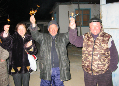 イスラム教なので本来のお正月は3月26日ですが、ロシア人の多い社会であることから、12月31日の夜にも年越しを祝う習慣があります。午前0時になるのに合わせて手持ち花火を打ち上げ、シャンパンで乾杯するのがキルギス流の年越しです。この様子は田舎も首都も変わりはありません。
