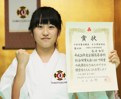 少林寺拳法は今年度から全国高校総体の実施競技に採用。長崎さんは今季、6つある演武構成の半分を高難度の新技に変更。6月の県総体で連覇を果たし、「初のインターハイでメダルを」と臨んだ。