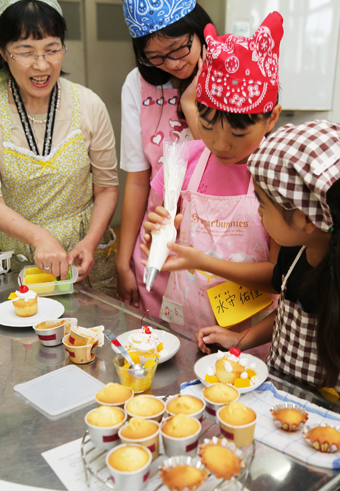 小学生と高校生がカップケーキ作りを楽しんだクッキング教室