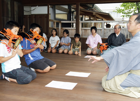 9月27日の赤穂大石神社薪能を前に開かれた能楽ワークショップ