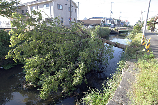 県光都土木事務所は「台風による強風で倒れたのではないか」と見ているが、折れた幹の断面の一部が灰色に変色していた。腐食も要因になった可能性が考えられることから、県と市は8日にも同川沿いの他の樹木について緊急点検を実施する方針。