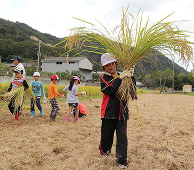 坂越小1・2年生児童が行った稲刈り体験