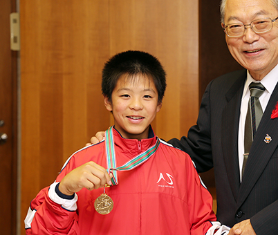 県大会の金メダルを手に全国ブロック選抜での健闘を誓う有政佑真君