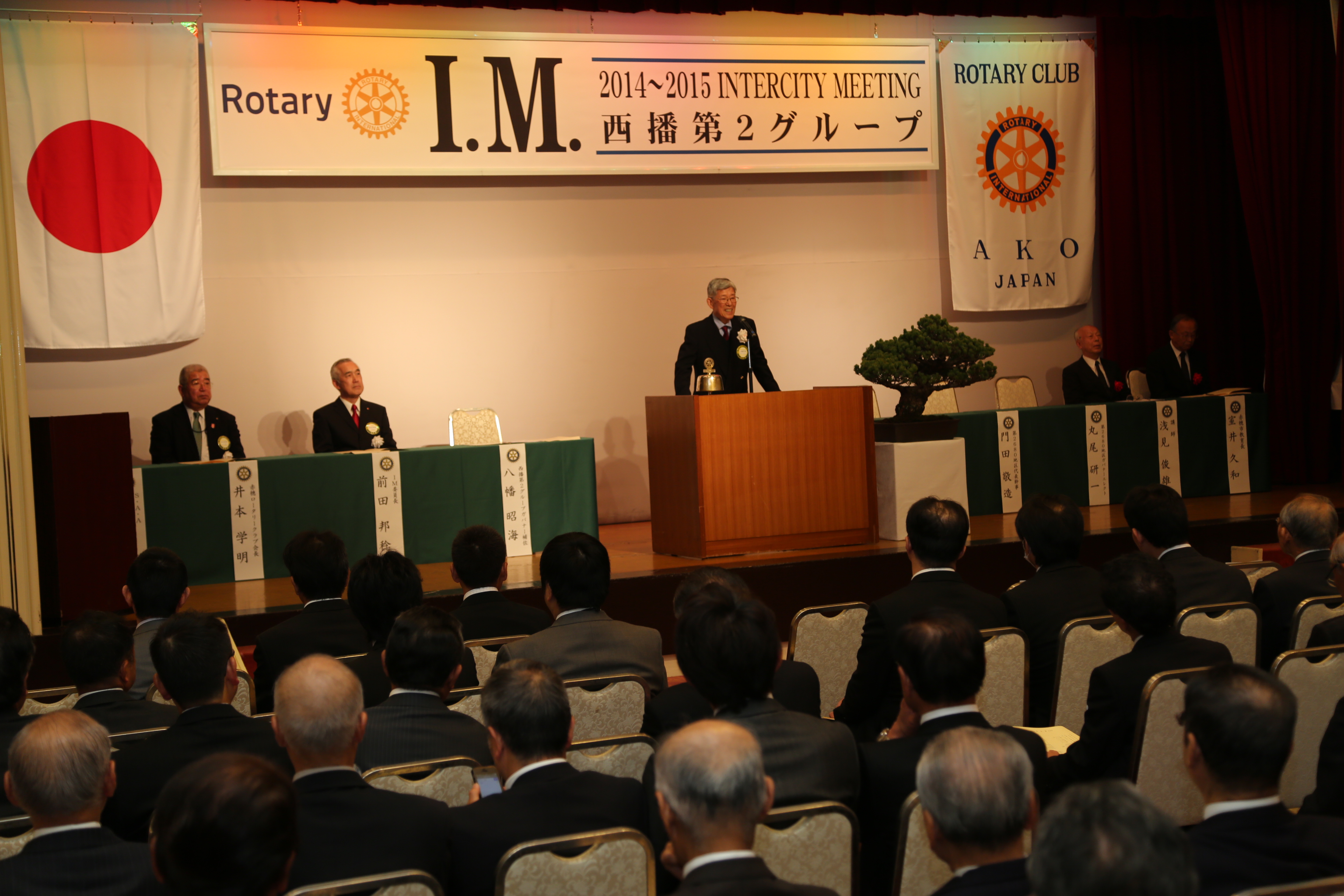 西播第2グループ(相生、龍野、上郡佐用、赤穂)が年に一度持ち回りで催すインターシティミーティング(I.M.)で約140人が出席した。開会式で、I.M.委員長の前田邦稔さんが「みなさまの思い出に残るI.M.となるよう、赤穂メンバー全員でもてなしの心で歓迎いたします」と挨拶。式典に続き、サッカー国際審判員の経験を持つ元東京大学教授、浅見俊雄さんが「スポーツを語る」と題して講演した。