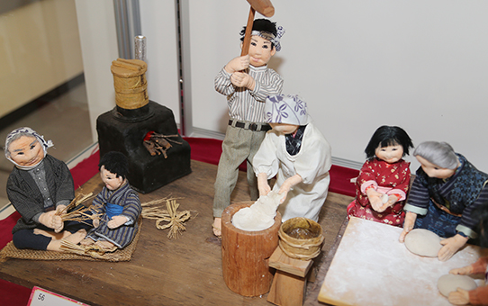 「内海みさ子創作人形展」の展示作品の一つ「師走(餅つき)」