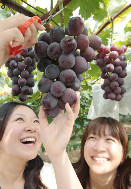 果汁たっぷりの「藤稔」、あっさりした甘みの「翠峰」など、どれも今が食べ頃。
