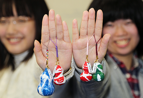 赤穂高校定時制の生徒たちが交通安全を願って作った「ひょうたんストラップ」