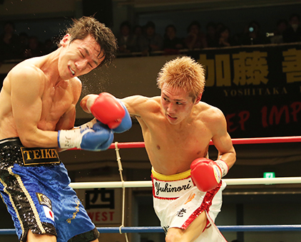 小國選手はWBC12位、石本選手はIBF11位。世界ランカー同士の一戦は互いの意地がぶつかり合う激しい戦いとなった。